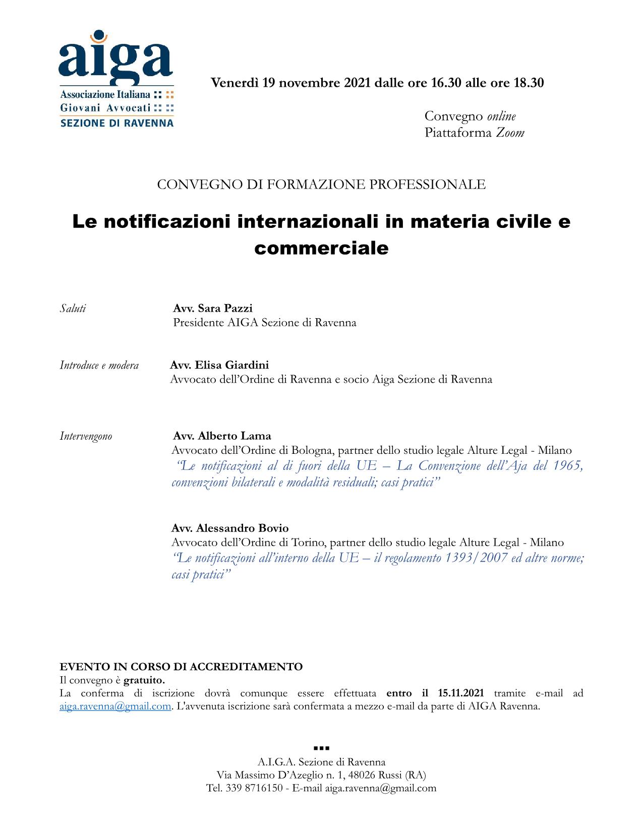 L'avvenuta iscrizione sarà confermata a mezzo e mail da parte di AIGA Ravenna.